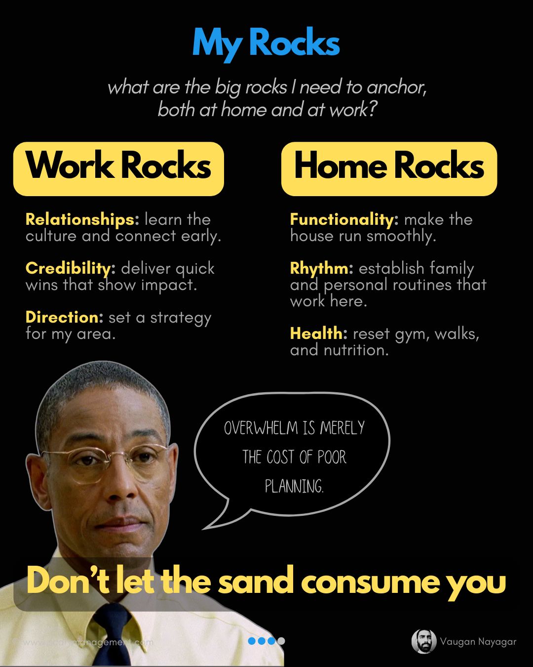 So I sat down and asked: what are the big rocks I need to anchor, both at home and at work?