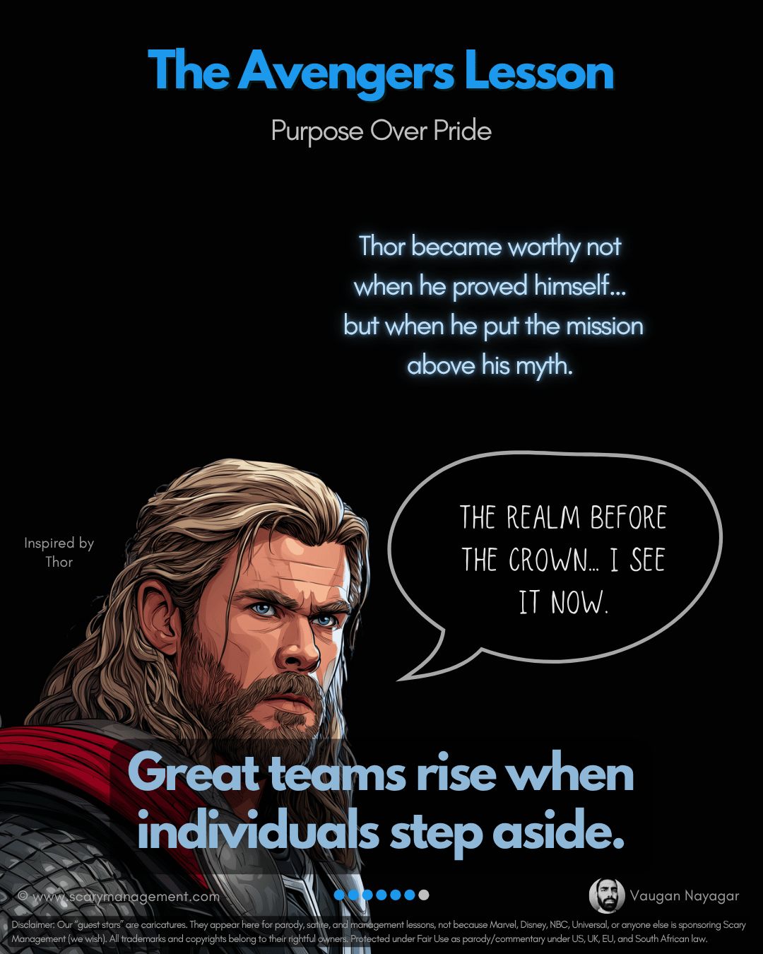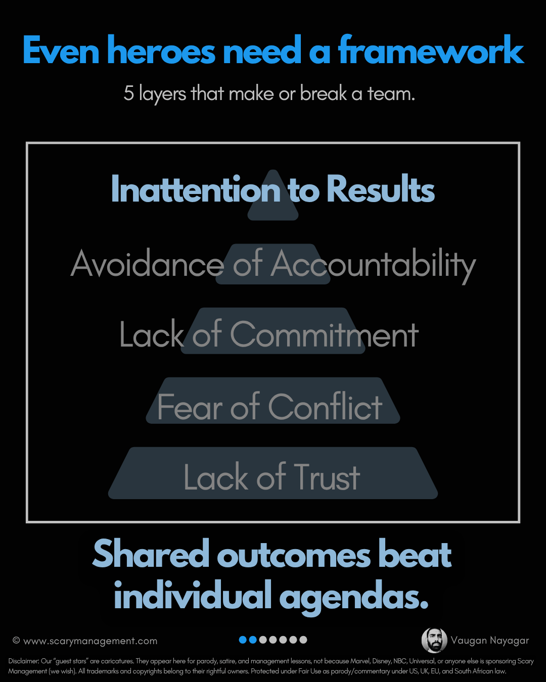 This post contains parody and satirical references to well-known characters, shows, and cultural icons. It is created for educational and humorous commentary on management and leadership. ScaryManagement is not affiliated with, endorsed by, or sponsored by any television networks, film studios, comic publishers, production companies, or performers referenced. All trademarks and copyrights remain the property of their respective owners. No infringement is intended. This use is intended as parody and commentary under fair use and related protections in the US, UK, EU, and South African law.