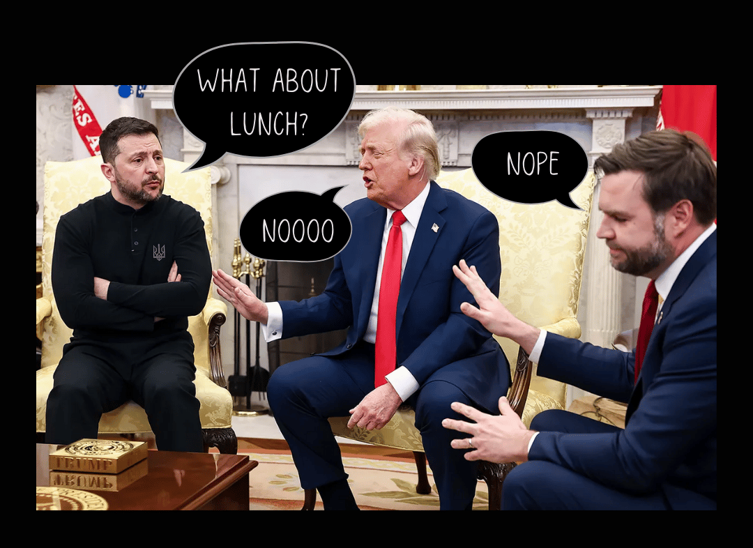 This meeting on 28 Feb 2025 was supposed to be a deal for the US to gain access to Ukraine minerals in exchange for support in the war with Russia. It ended with no deal and no lunch.